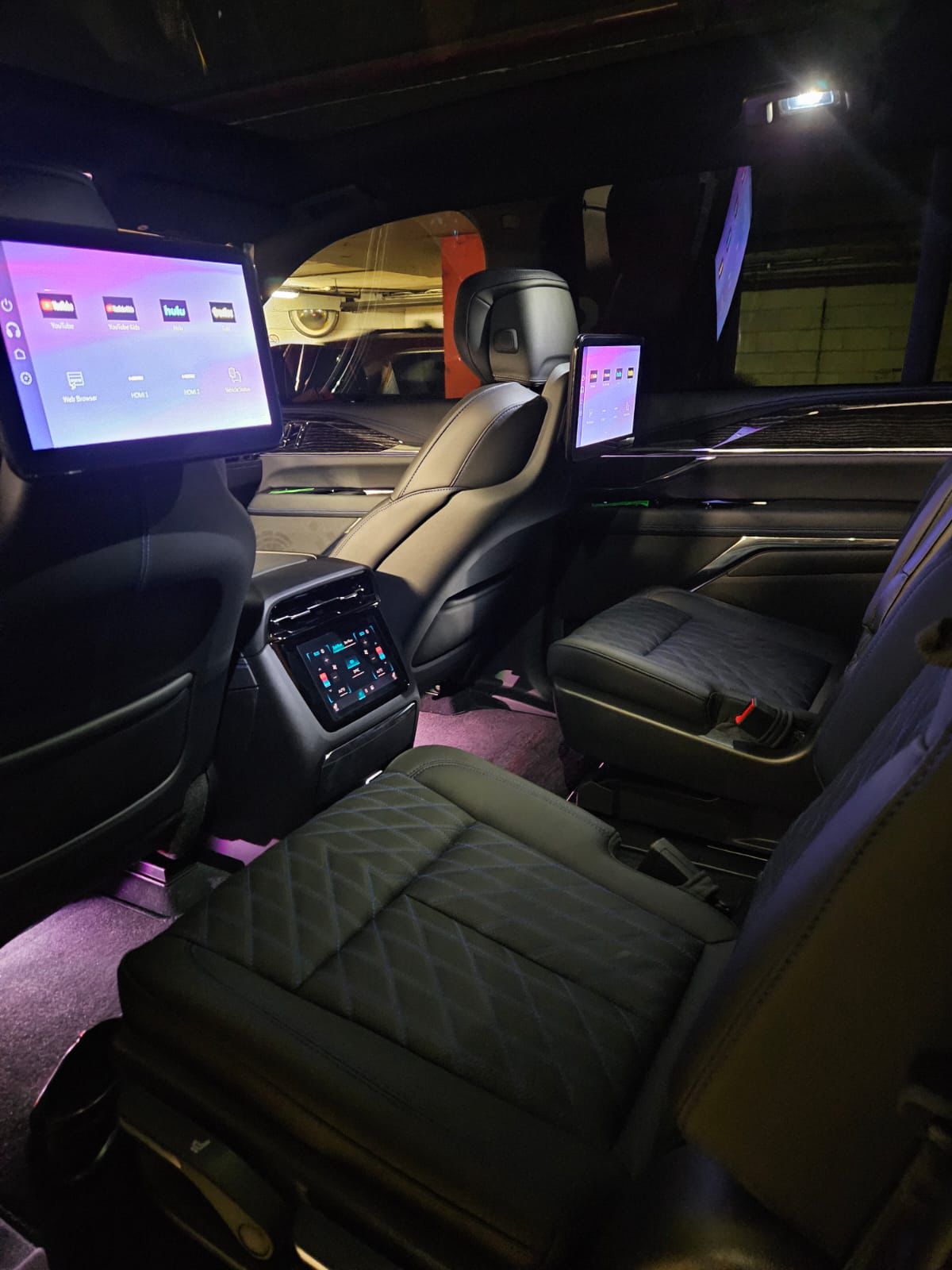 - Executive Second-Row Suite: Featuring power-folding captain’s chairs with stowable tray tables, dual wireless charging pads, and 12.6-inch personal entertainment screens for a true mobile office experience.